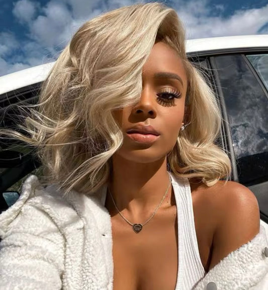 Blonde Bob Wig Lace Hair Wig Lace Front Short Wave Wig Side Part Synthetic Hair Wig