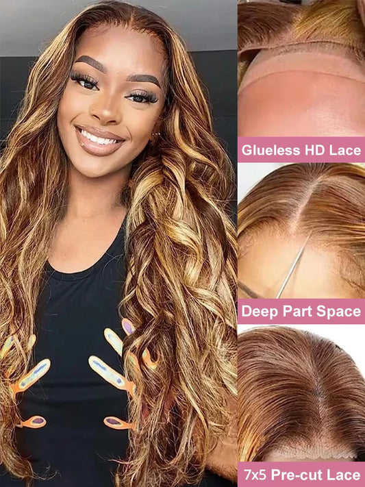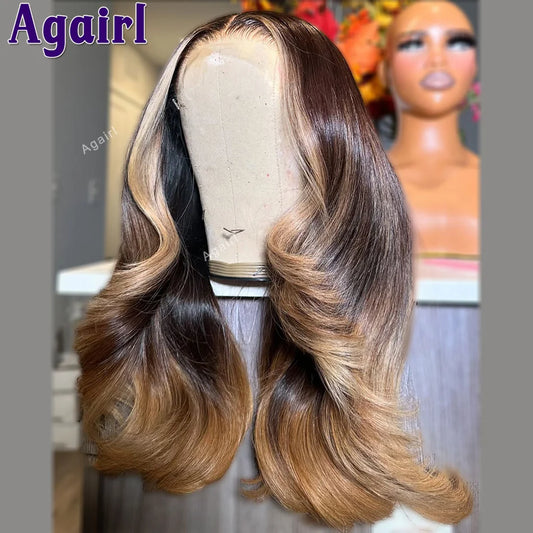 Highlight Brown Blonde Colored 5X5 Lace Closure Wig Human Hair For Women Kinky Curly 13X6 13X4 Lace Frontal Wig 180% Density