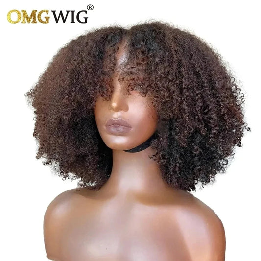 Afro Kinky Curly Mongolian Hair Wig Human Hair Wigs with Bangs Glueless Wig Remy Brazilian Short Curly Bangs Wig Human Hair