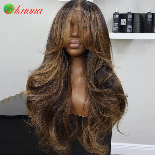 Ombre Brown Blonde Colored 13x6 13*4 Transparent Lace Frontal Wig Body Wave PrePlucked 180% Density 100%Human Hair Wig For Women